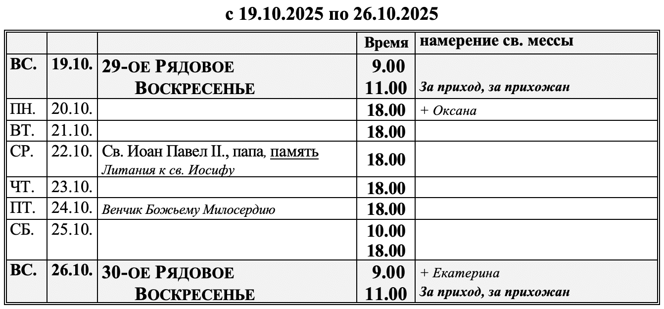 3. На этой неделе: 1 четверг – молитва о призваниях, 1 пятница и 1 воскресенье месяца (пожертвование на епархию).