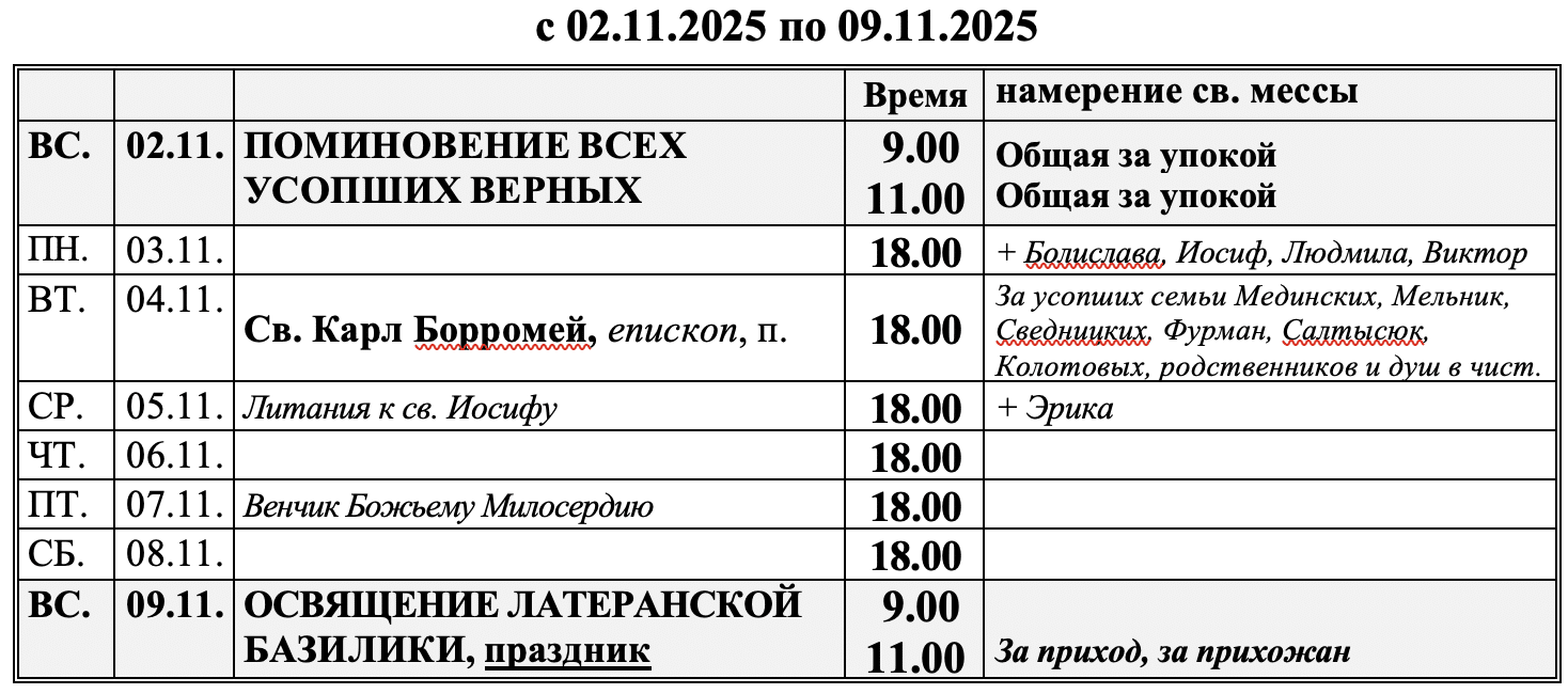 3. В субботу обязательный праздник Всех святых (мы обязаны участвовать в св. мессе).